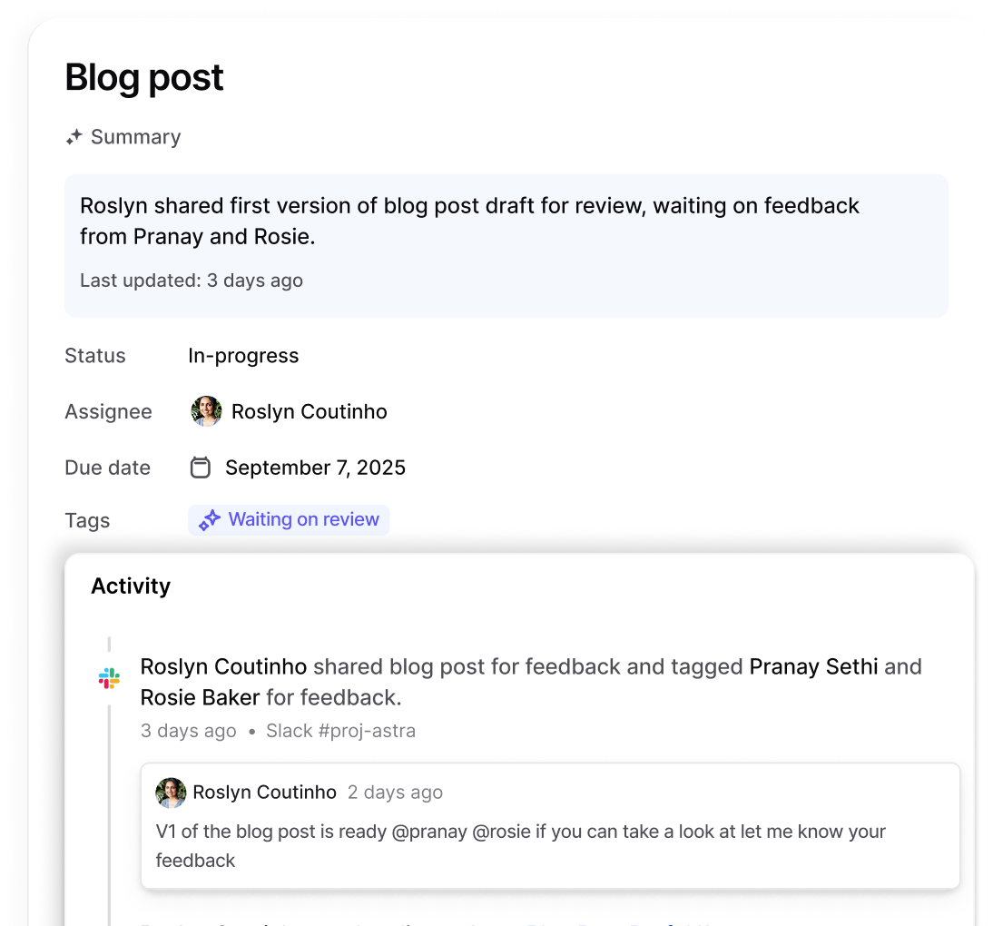 Traditional project management tools go stale the moment you stop updating them.