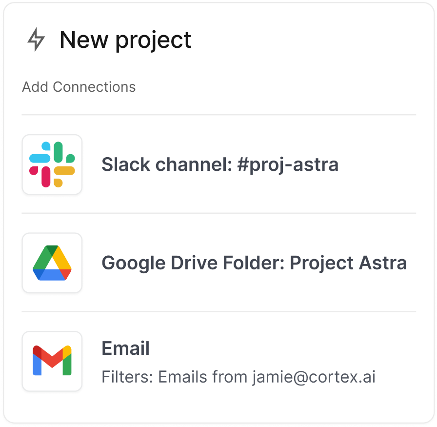 Add Maestro to a Slack channel or link a Google Drive folder. From then on, Maestro quietly tracks project activity in the background.